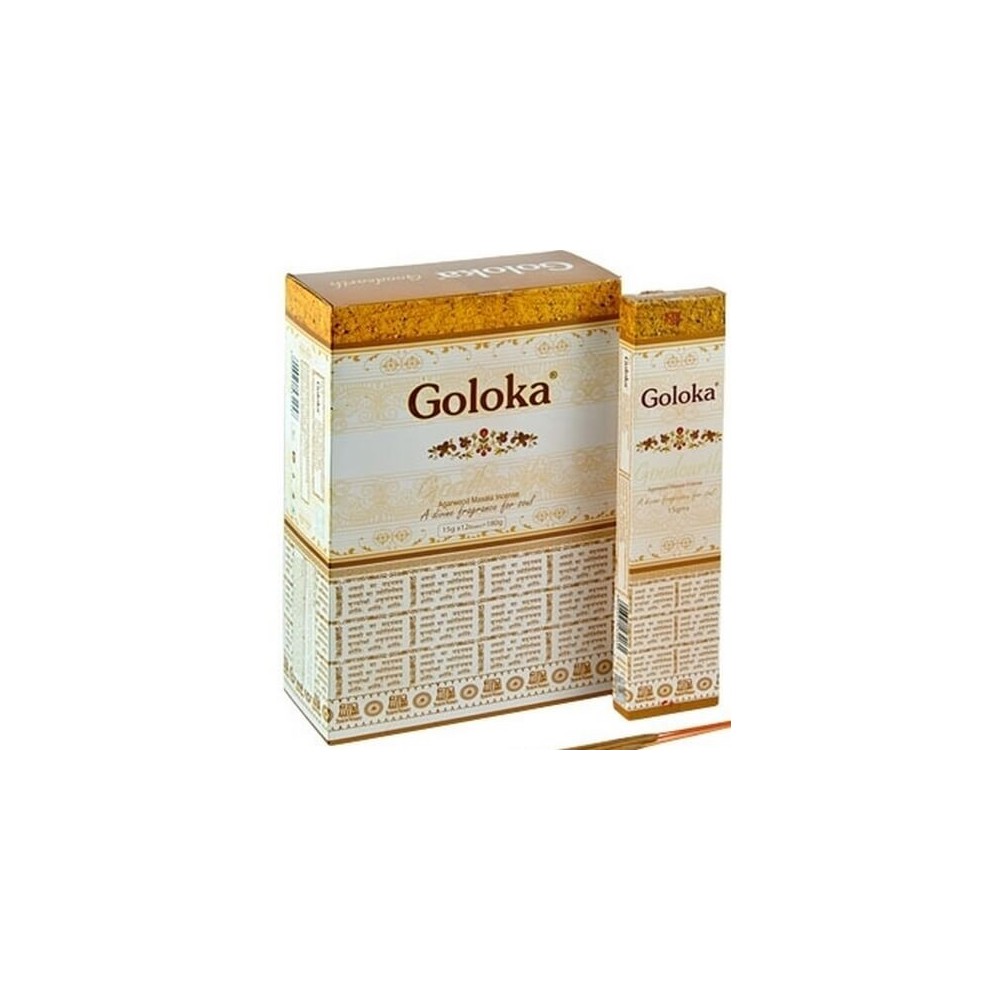 Encens naturels, roulés à la main. Parfum votre maison. L’encens d’aromathérapie Goloka convient à la méditation et à la prière. Boîtes de 12 paquets de 15g. Chaque parquet contient +/-15 bâtonnets.