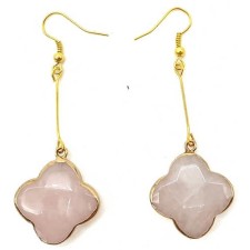 Boucles d'oreilles Trèfle Facetté Quartz Rose