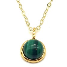 Collier en Argent 925 plaqué Or serti d'une Malachite qualité extra.